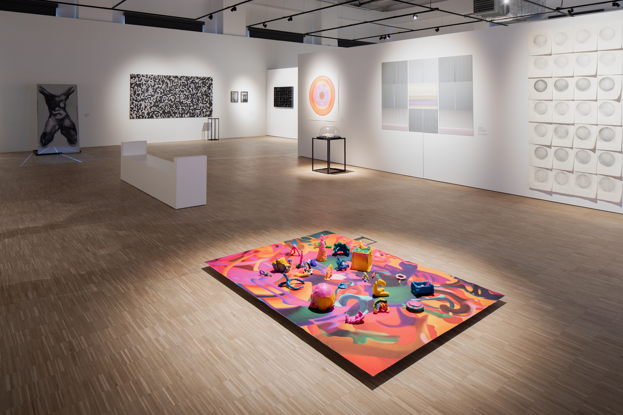 Najmłodsi poznają sposoby na wykonanie odbitek graficznych, a na koniec inspirując się jednym z dzieł, wczują się w rolę artysty i wykonają w materiale rzeźbiarskim kontynuację prezentowanej pracy, które być może pozostaną na wystawie. Inspiracją do zabawy twórczej będzie praca Marii Pytlos „Być tam, gdzie się nie jest. Dotykać czegoś, co nie istnieje” – to dywan z trójwymiarowymi obiektami ceramicznymi. Ideą artystki było zaproszenie, by przysiąść na dywanie i wrócić do dzieciństwa przywołując w sobie dziecko.