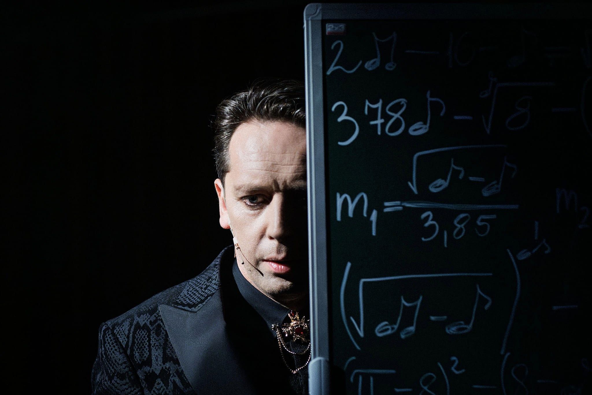Ciężkie, bufiaste kotary. Poddenerwowani Venticelli (Michał Sienkiewicz, Alex Spisak), w cudownie przegiętych kreacjach (scenografia i kostiumy Łukasz Błażejewski), biegają wzdłuż sceny, by dopiąć wszystko na ostatni guzik. W końcu jakby nie było, jesteśmy na dworze cesarza – u Habsburgów ordnung muss sein. Aby pomówić o narodzinach geniuszu, trzeba zacząć od śmierci – pochylający się nad grobem, leżący na łóżku pod aparaturą Antonio Salieri (Jerzy Fedorowicz) rozpoczyna opowieść o swoim życiu i relacji z Mozartem (Vitalik Havryla). W trakcie spektaklu co jakiś czas wtrąca się, dorzuca swoje „didaskalia” do wydarzeń. Na scenie spotkamy jeszcze dwie wersje włoskiego kompozytora: epizodyczną, chłopięcą (Jonatan Maciejowski) i dojrzałą (Marcin Kalisz), będącą uosobieniem pałacowych intryg, snobizmu i konserwatyzmu w podejściu do sztuki. Salieri Kalisza jest niczym naukowiec. Przechadzając się wzdłuż tablicy z założonymi za plecami rękoma, kreśli, rozpisuje swoje kompozycje, które dla laika jak ja, wyglądają jak znane z filmów s-fi kosmologiczno-fizyczno-matematyczne obliczenia. Jest powściągliwy, stonowany, muzyka jest dla niego uosobieniem harmonii i ładu wszechświata. I tak trwałoby to w nieskończoność, gdyby nie informacja o przybyciu na dwór cudownego młodzieńca z Salzburga.