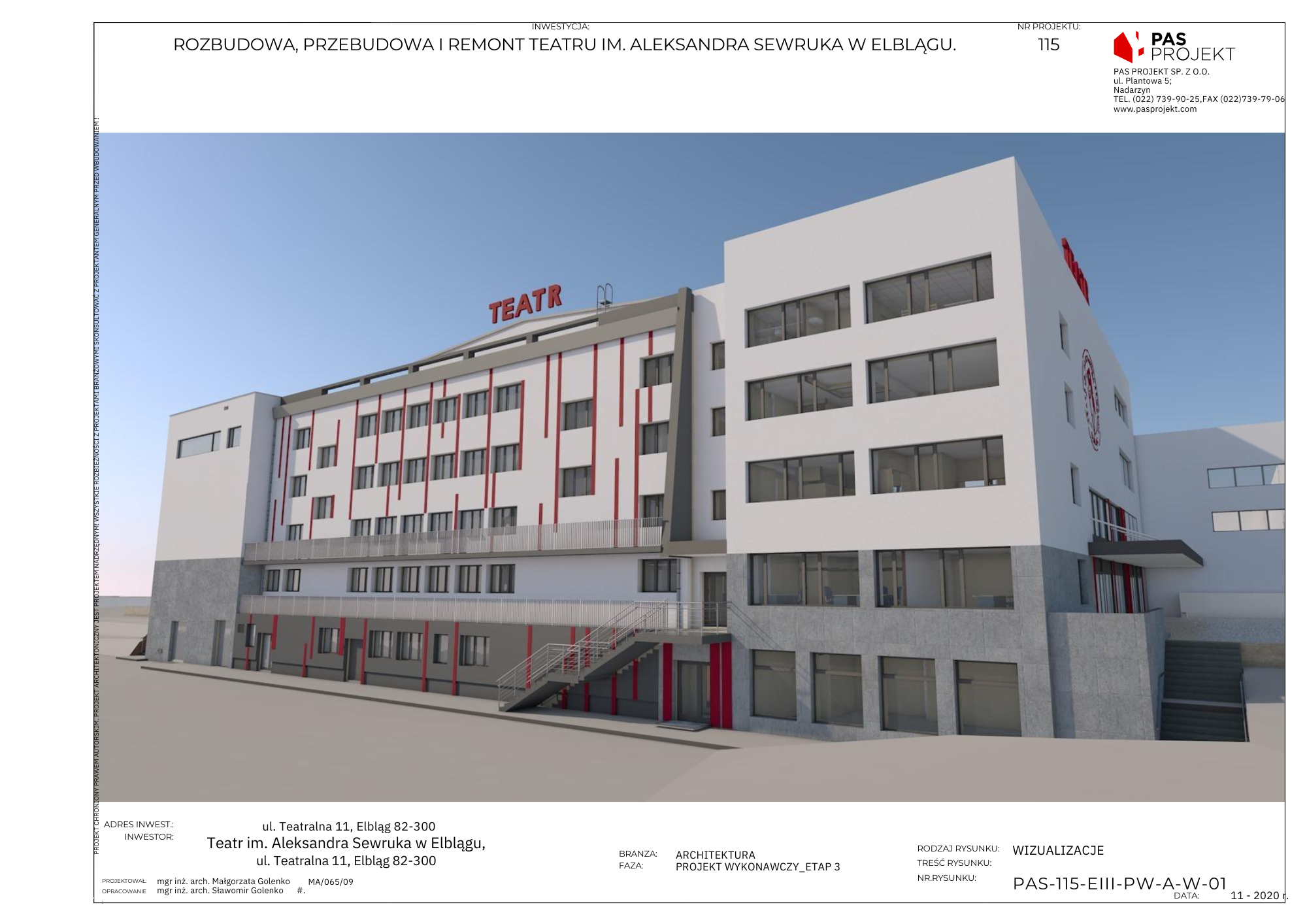 Prace modernizacyjne i rozszerzenie przestrzeni teatralnych pozwalają na realizację wielu ambitnych celów, które mają pozytywny wpływ zarówno na środowisko teatralne, jak i lokalną społeczność. Teatr im. Aleksandra Sewruka w Elblągu stoi przed kolejną możliwością powiększenia swoich przestrzeni, zarówno tych, administracyjnych, które są niezbędne do realizacji każdego projektu, poprzez pracownie części zascenicznej, pracujących na co dzień na potrzeby obsługi widowisk, przez magazyny, garderoby, powierzchnie dla działalności edukacyjnej i literackiej oraz ciągi komunikacyjne, parkingi i część gastronomiczną, jako wyjątkowe miejsce spotkań kulturalnych, gdzie widzowie będą mogli spędzić czas przed i po spektaklach. Zmodernizowane przestrzenie będą bardziej dostępne dla osób z niepełnosprawnościami, co uczyni Teatr instytucją otwartą i przyjazną dla wszystkich.