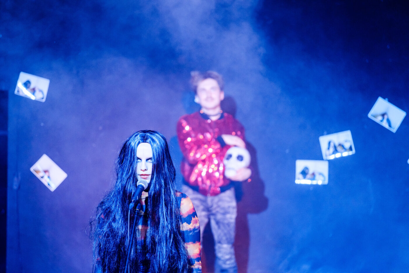 W 1983 roku norweski black metal ujrzał światło dziennie (raczej niemijającą noc?). W początkowym okresie działalności utożsamiano trzynastoletnich, skandynawskich wykonawców tego gatunku z nurtem satanizmu teistycznego, budząc grozę, ale i fascynację takim odłamem black metalu. Jednak krótkie lato i długa, mroźna, ciemna zima, która kojarzy się z mrocznymi klimatami i ekstremalnymi, nienawistnymi nastrojami sprzyja – być może – rozwojowi pewnych gatunków muzycznych i konkretnych brzmień. Do tego szybko rosnący dobrobyt, nieobecni w życiu wchodzących w dorosłość młodych ludzi rodzice i inni, nadto tolerancyjni dorośli. Czy tak musiała rozwinąć się ukazana w spektaklu droga młodziutkich twórców i członków zespołu Mayhem do sukcesu i na międzynarodowe sceny? Grupa powstała w Oslo z inicjatywy gitarzysty Øysteina “Euronymousa” Aarsetha, a nazwa pochodzi z utworu grupy Venom „Mayhem with Mercy”. Euronymous, Necrobutcher, Hellhammer, Dead i Varg nie przebierają w słowach, wychwalają komunizm, szatana, grożą śmiercią i wyśmiewają tych, z którymi im nie po drodze. To prawda – przeginają i są wielce zabawni w swym infantylnym zacietrzewieniu, ale do czasu. Wprawdzie na scenie twórcy prezentują spektakl farsowy, jednak dość szybko przestaje być wesoło – pamiętam, że rzecz całą oparto o fakty, samobójstwo Deada, poprzedzone odczytaniem listu (znakomicie odegrana przez Katarzynę Annę Dominiak scena), potem zabójstwo lidera grupy Euronymusa. Porażające, nawet jeśli tragikomiczny styl obowiązuje do samego końca przedstawienia.