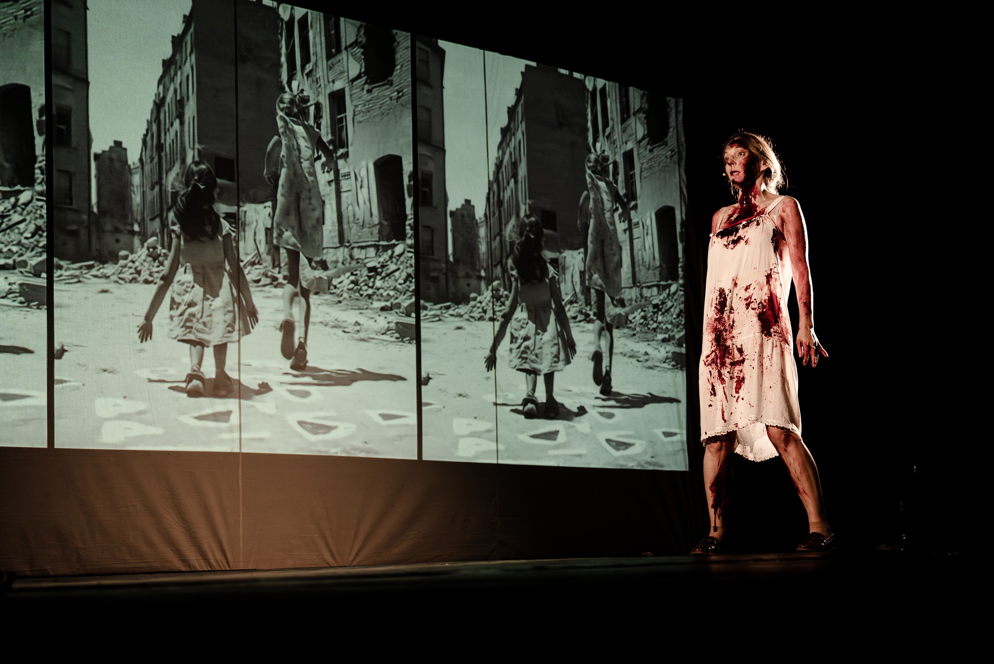 O monodramie Agnieszki Przepiórskiej Ocalone w reżyserii Mai Kleczewskiej napisano już wiele. Temu przejmującemu teatrowi jednej aktorki, jak i poprzednim spektaklom, została poświęcona książka profesor Katarzyny Flader-Rzeszowskiej Bioteatr Agnieszki Przepiórskiej, której promocja odbyła się w dniu otwarcia 39. TSTJA. Cóż można do niej dodać? Herstorie sklejone przez Piotra Rowickiego z portretów kobiet gwałconych na ochockim Zieleniaku w 1944 przez oddziały SS RONA „tarmoszą” emocjami tak silnie, że dobrze, iż monodram Przepiórskiej otwierał festiwal i był jedynym, który tego dnia został zagrany. Mieliśmy czas na oddech po… A na portalu scenicznym Teatru Baj Pomorski aż do ogłoszenia werdyktu widoczny był ślad „krwi” aktorki. Może to zbyt drastyczny znak dla jurorów?