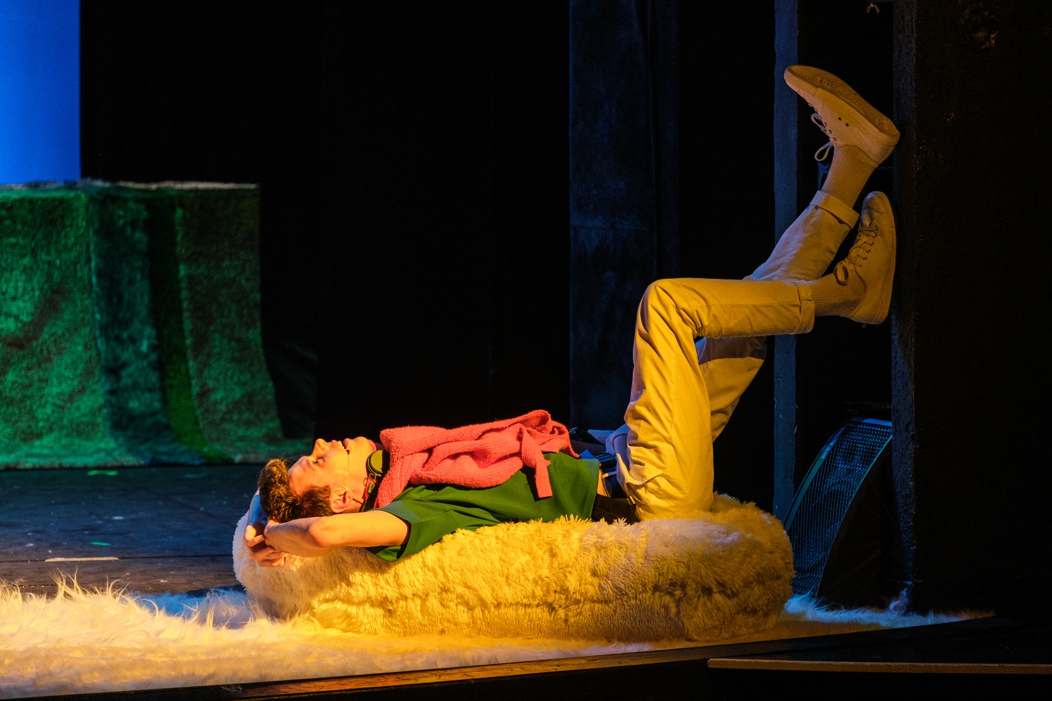 Spektakl traktuje o ważnych, niełatwych problemach, a humor oraz piosenka ocieplają i wygładzają wszystko. Nie ma tu ani krzty moralizatorstwa, za to jest pełne zrozumienie psychiki dziecka, jego możliwości percepcyjnych i wyobraźni. Mnóstwo tu reżyserskich perełek, które dorosłych rozbawić mogą swą aluzyjnością i wraz z błyskotliwymi dialogami (ukłon w stronę autora), świetnie podanymi przez aktorów, są kolejnym, doborowym „smaczkiem” tej realizacji. W swej bajce Merlin Vervaet największy nacisk kładzie na trud związany z poszukiwaniem własnego „ja”. Temu też służą wybory bohatera – nie zawsze oczywiste, ale przemawiające do dziecięcej wyobraźni. Rośnie coraz szybciej Lis – świadomość (znakomity pomysł na czytelne dla młodej publiczności pokazanie tego procesu). Momentami abstrakcyjny spektakl, radosny, „niemożliwy” jak fantazja dziecięca, przepełniony muzyką, z wyraźnie zarysowanymi, plastycznymi postaciami, to zasługa całej ekipy teatru. „Lubię pisać o ludziach, którzy są trochę niewidzialni, zapomniani. Staram się znaleźć odrobinę poezji w ich charakterystyce, w ich duszy. Każdy ma prawo do swojej historii i w każdej historii jest piękno” – przekonuje autor tekstu, a reżyserka Ada Tabisz podąża za nim i udowadnia, że takie podejście jest ważne dla wszystkich, również dla dziecka. Aktorzy świetnie sprawdzają się jako wokaliści i z bezbłędną dykcją radzą sobie z polskimi łamańcami językowymi, które pojawiają się w przedstawieniu. Humor i żart, rytm i rym zawarty w cudnych piosenkach i odpowiednie rozłożenie akcentów, podkreślane z precyzją przez aktorów, pozwalają wszystkim chichotać przez ponad godzinę. Jakub Szlachetka, odtwórca głównej roli, od pierwszych chwil na scenie budzi sympatię młodych widzów. Gra z konieczną werwą, naturalnie przechodząc od spokojnych scen do tych dynamiczniejszych, wypełnionych emocjami, których sam Orecchio czasem nie rozumie. Pomaga mu Lis – bardzo dobry, zabawny Tomasz Kowal – nieoczywiste stworzenie i jakże miłe. Jakub Szlachetka znakomicie nawiązuje dialog z dziecięcą publicznością – energia między sceną a widzami krąży tu nieustannie. Wymaga to wyczucia oraz świeżości w podejściu do roli i tego młodziutkiemu aktorowi z pewnością nie brakuje. Pozostałym również. Krzysztof Prygiel, choć jego rola Wędkarza nie jest duża, gdy tylko zaczyna śpiewać, publiczność ma szansę szaleć jak na wybornym koncercie – „Małe, mniejsze, malutkie. Chodźcie do mnie pyszniutkie”. Widać u niego (z pewnością i słychać) klasę aktorską wysokiej próby. Izabella Kurażyńska – Mama, unosi się w powietrze, bo strach ją dopada. A dopada często – aktorka bawi najmłodszych tą „balonikową” kreacją, z wprawą wcielając się w zapatrzoną w starszego syna mamę. W dodatku jakże pyszna jest w scenach z Karmelkiem – Lisem, który jej zdaje się być kotem. Adam Wnuczko – Dziadek Generał Pepe, „najlepszy znawca” teatru, sepleniący z pewnego powodu (podczas spektaklu wyjaśni się dlaczego), z korniszonowym „cygarem” w zębach jest tak humorystyczny (choć celowo bywa irytujący), że widownia pęka ze śmiechu. Świetnie oddaje charakter swojego bohatera, podobnie jak Elżbieta Pejko. Aktorka jako Pani Dyrektor teatru jest znakomita, wytrawna, urocza, a jednocześnie nieco groteskowa – takie kreacje przemawiają do najmłodszych i dorosłych. I oczywiście Pinokio czyli Damian Kamiński, absolutnie nieznośny, niemożliwie sławny, a jednak z gorącym i mimo wszystko troskliwym sercem patrzy na swego bohatera z lekkością i wnikliwością. Wszyscy grają równie brawurowo, z konieczną energią, a kiedy trzeba – przymrużeniem oka. Paweł Jaroszewicz jako Profesor, Jacek Poniński – Rycerz, który „opowiada” o swej postaci ruchem opartym na tai-chi, wypełniają scenę intrygującymi osobowościami. Sukces spektaklu to zasługa całego zespołu. Równie istotna jest muzyka Dominika Skwarka – piosenki pełne uroku i prostoty, a jakże wdzięczne, same „wpadają” w ucho. Wraz z oryginalnymi, niecodziennymi rozwiązaniami scenograficzno-przestrzennymi Aleksandry Starzyńskiej oraz multimedialnymi elementami Emilii Gumańskiej i grą świateł autorstwa Alicji Pietruckiej świetnie wpisują się w treść sztuki. Aktorzy z powodzeniem wykorzystują również bardzo plastyczną i atrakcyjną dla oka choreografię Hashimotowiksy – Pauliny Jakim.