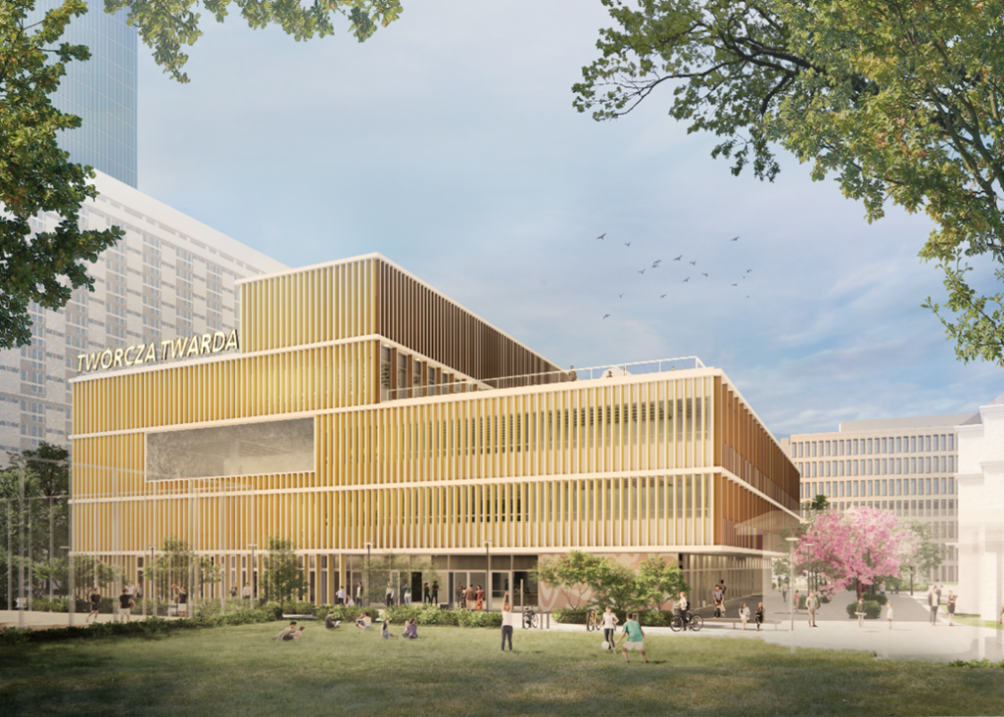 Według projektu, w siedzibie Twórczej Twardej znajdą się: pracownie artystyczne, sala muzyczna, przestrzeń wystawiennicza, sala widowiskowa ze sceną i widownią na ponad 300 miejsc, sale do zajęć edukacyjnych, ćwiczeń i prób, przestrzenie wspólne, zaplecze techniczne, pomieszczenia biurowe oraz kawiarnia. Na dachu nowego budynku zaplanowano m.in. boiska, przestrzeń na uprawy miejskie, ule dla pszczół, miejsca do odpoczynku, a także kino letnie z ekranem i małą widownią. – Już kilka lat temu, przed przystąpieniem do projektu domu kultury Twórcza Twarda, zwróciliśmy uwagę, że jest to miejsce bogate kulturowo, z długą historią, a obecnie chętnie odwiedzane przez mieszkańców i turystów. Projektując budynek zależało nam na stworzeniu przestrzeni publicznej w postaci sekwencji zielonych placów na osi planowanego pasażu łączącego ul. Twardą i ul. Grzybowską w sąsiedztwie Synagogi i Białego domku, dla jak najszerszej grupy ludzi. Bryła budynku zaprojektowana w sposób tarasowy dostosowuje swoją skalę od strony wschodniej do pasażu pieszego i budynku Synagogi, a następnie narasta w kierunku zachodnim w sąsiedztwie wysokiej zabudowy osiedla za Żelazną Bramą oraz drapaczy chmur. Działka jest niewielka, a planowany program funkcjonalny bardzo bogaty, w związku z tym wykorzystano również powierzchnię dachu. Zależało nam, aby była to przestrzeń dostępna o każdej porze roku, tętniąca życiem, wpisująca się w obecną zabudowę, a jednocześnie promieniująca na cały kwartał, sąsiadujące budynki i ulice – zaznaczyli Szymon i Eliza Kalata z pracowni Kalata Architekci.