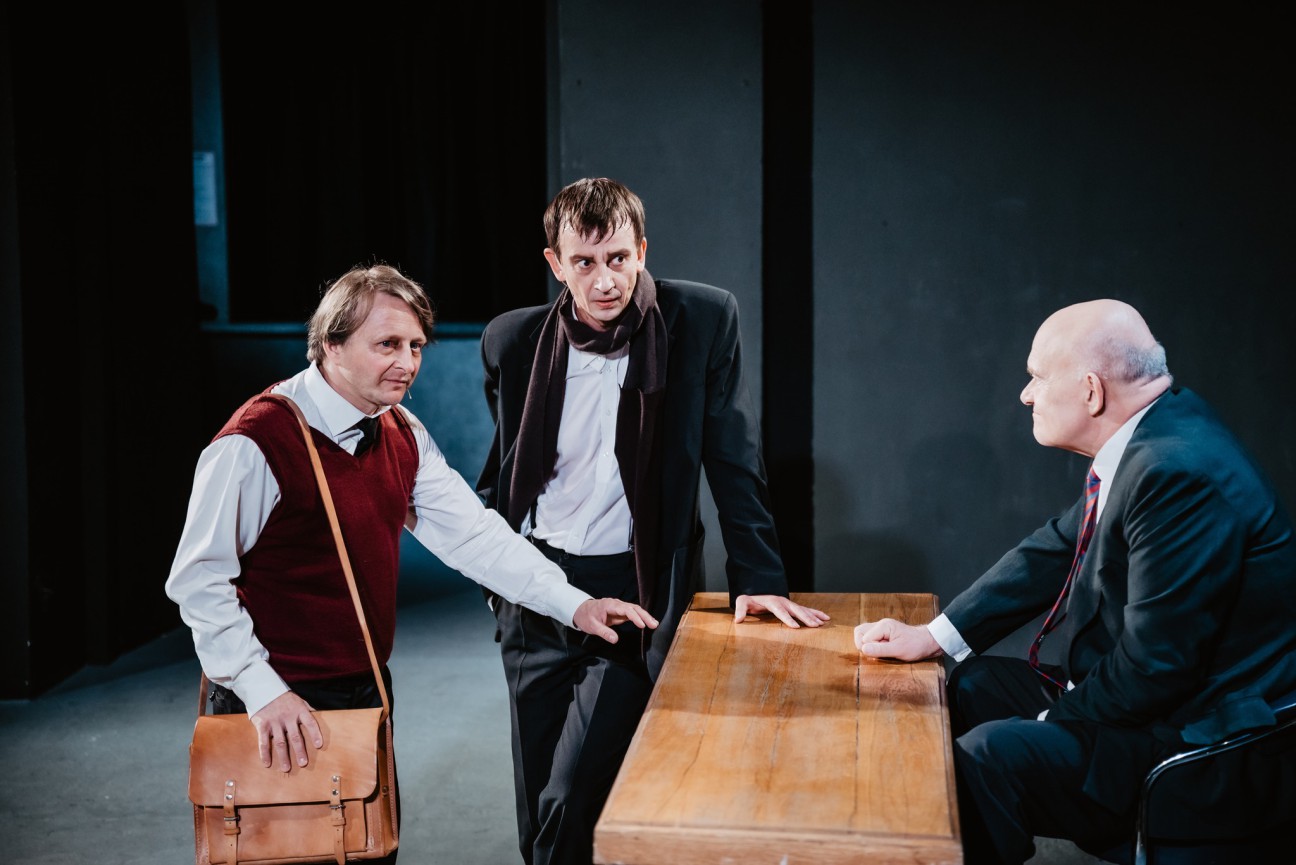 W centrum wydarzeń „Cerbera z Beaubourga” stoi inny wybitny artysta teatru – Tadeusz Kantor. Ten założyciel awangardowego teatru Cricot 2 w Krakowie, scenograf, reżyser, malarz, twórca spektakli „Umarła klasa” i „Wielopole, Wielopole” przyjeżdża we wrześniu 1985 roku do Centrum Kultury Beaubourg im. Georgesa Pompidou w Paryżu, by pokazać swoją wystawę oraz nowe przedstawienie „Niech sczezną artyści”. Przekonany o swojej rozpoznawalności napotyka na przeszkodę, zda się nie do przejścia, w osobie portiera owego centrum, który żąda od Kantora okazania identyfikatora umożliwiającego wejście do placówki. Na nic zdają się próby przekonania zasadniczego portiera, że to jest wielki artysta, znany na świecie, Kawaler Legii Honorowej, co potwierdza Krytyk (Łukasz Lewandowski), a także asystentka artysty (Katarzyna Głogowska). Brak tradycyjnego identyfikatora (Kantor twierdzi w tekście Tadeusza Słobodzianka, że jego jedynym identyfikatorem jest jego Sztuka) powoduje, że reżyser musi pozostać w holu Beaubourga. Ta z pozoru banalna sytuacja służy Tadeuszowi Słobodziankowi do powiedzenia wielu istotnych rzeczy o człowieku, artyście, sztuce, wolności wreszcie. I nawet jeśli czasami są to treści zgoła banalne, jak choćby wypowiadana przez Portiera konstatacja: „W życiu człowiek często robi rzeczy, których później żałuje”, to z wielu innych wypływa do widza zachęta do refleksji. Wydaje się, że najważniejszy jest tu dyskurs o wolności artysty, która nie powinna być ograniczana ani sterowana czymkolwiek poza wolną wolą twórcy. Ale nie mniej ważne jest zagadnienie, czy fakt bycia geniuszem, za jakiego uważany był i pewnie wciąż jest Tadeusz Kantor, daje prawo do stawiania się poza prawem, a w każdym razie ponad obowiązkiem posiadania identyfikatora. W tej kwestii ostro ścierają się postawy artysty i portiera – weterana wojny algierskiej, także odznaczonego Legią Honorową, co rodzi humorystyczne sytuacje, zwłaszcza, że ścierają się tutaj również dwie jakże odmienne stylistyki aktorskie. Adam Ferency gra nieugiętego zwolennika zasad i przepisów, mając do dyspozycji w zasadzie tylko (a może aż) tekst i własną twarz, bogatą mimikę. A mimo to potrafi stworzyć postać tyleż groźną, co dumną, która wyraża poglądy większej grupy ludności, reprezentuje „zwykłego” człowieka. Natomiast Modest Ruciński (nawet fizycznie bardzo podobny do pierwowzoru granej postaci) to wulkan energii, porywczy, wybuchowy, wykrzykujący w emocjach słowa o swoim geniuszu, dającym mu megalomańskie prawo do stawiania się ponad ludźmi nietworzącymi sztuki. Rucińskiemu wierzy się, gdy skarży się na ostracyzm środowiska wywołany pewnymi faktami z jego życia prywatnego, jak i wtedy, gdy domaga się dla siebie niezależności artystycznej. Choć, oczywiście, można z wypowiadanymi przez Rucińskiego – Kantora poglądami polemizować.