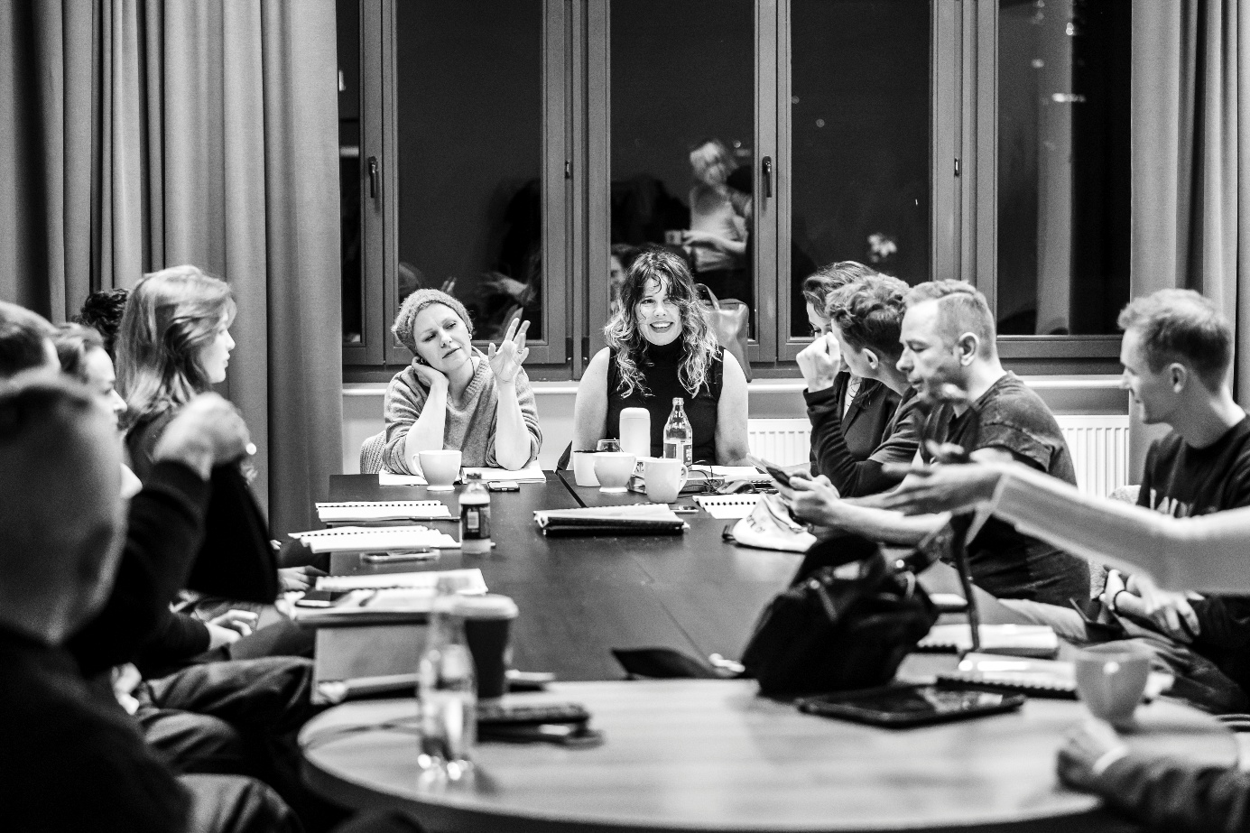 na zdjęciu: pierwsza próba czytana 16 grudnia 2024 r. w siedzibie Teatru Polskiego w Podziemiu. Fot. Natalia Kabanow.