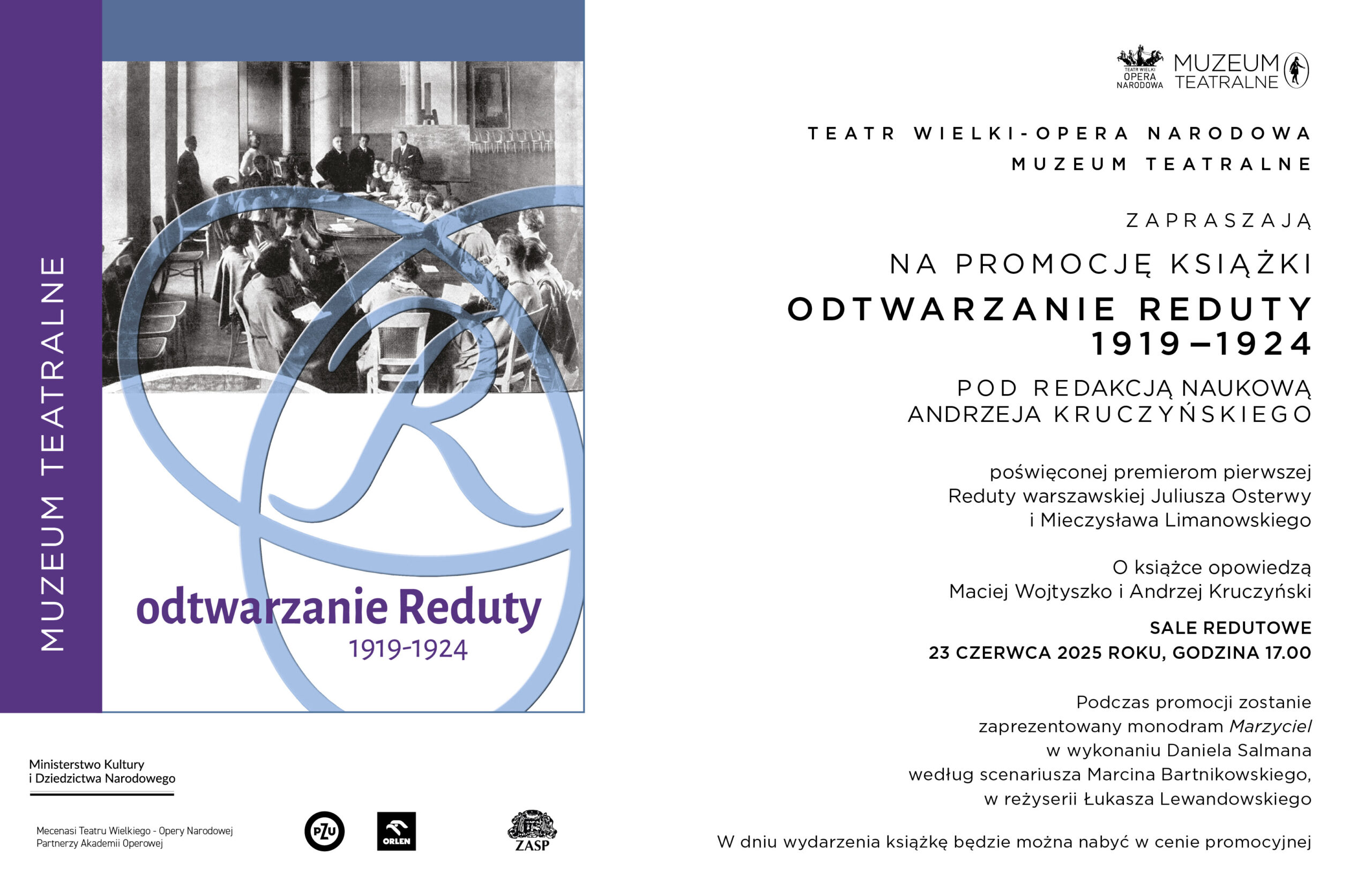 Teatr Wielki – Opera Narodowe i Muzeum Teatralne zapraszają na promocję książki „Odtwarzanie Reduty 1919-1924” pod redakcją naukową Andrzeja Kruczyńskiego, poświęconej premierom pierwszej Reduty warszawskiej Juliusza Osterwy i Mieczysława Limanowskiego.