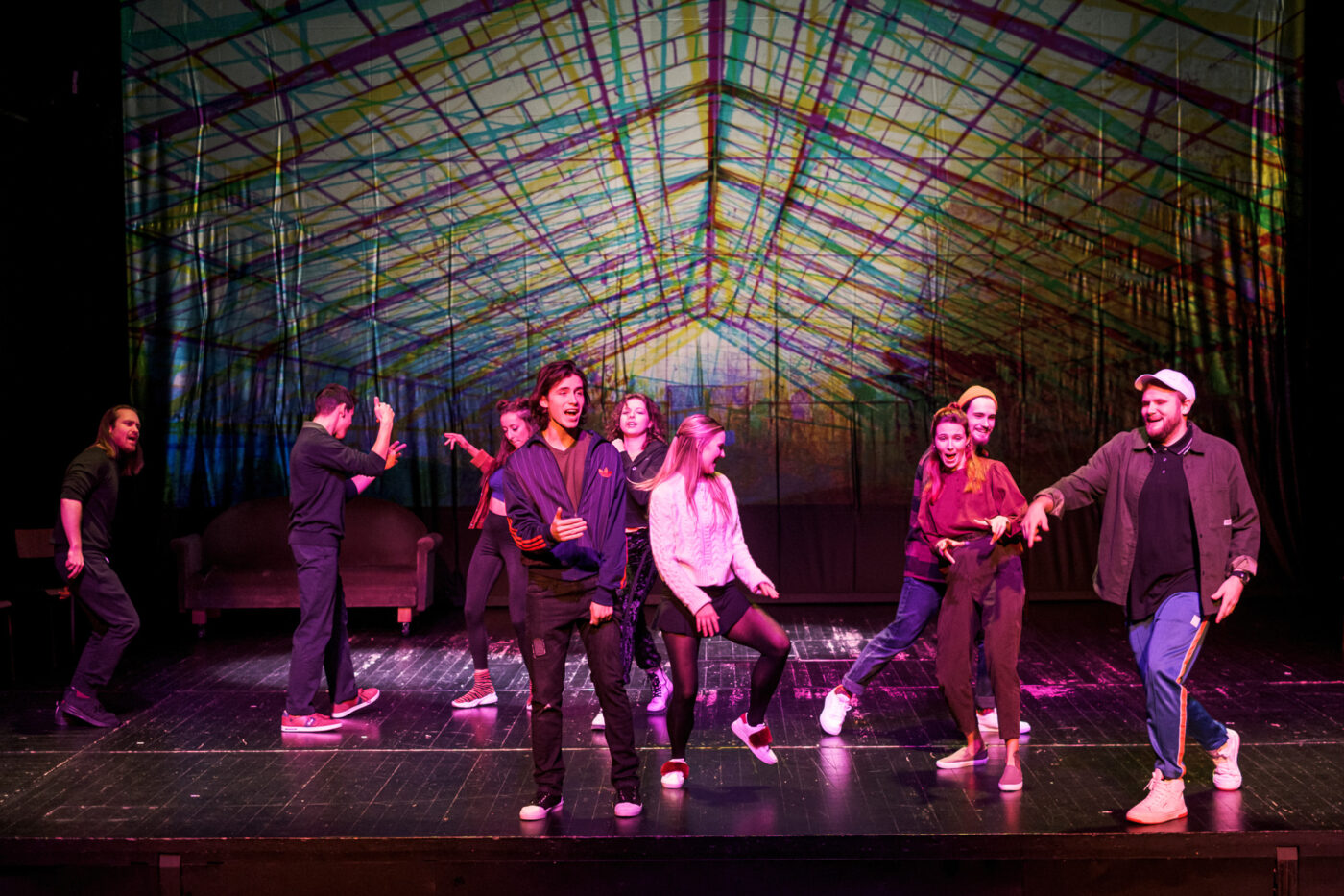 Zapewne gdybym przeczytał dramat Jordana Tannahilla zastanawiałbym się, choć rzecz dotyczy przecież problemów bardzo młodych ludzi, czy to właściwy materiał na dyplom aktorski mający w końcu pokazać to, czego adepci sztuki nauczyli się w ciągu czterech lat w szkole. I nie chodzi o poruszane tematy czy zastosowany język, lecz o formę w jaką ten rozpisany na głosy tekst młodego kanadyjskiego dramaturga, społecznika i aktywisty jest ubrany. Jego niecodzienna narracja jest bowiem pozbawiona potoczystości, rwana na krótkie strzępy zdań i nie zawsze przybiera charakter dialogu. Bardziej to przypomina zlepek słów, które trzeba samemu umieścić w odpowiednim kontekście. Poza tym bohaterem jest tutaj zbiorowość, co może nie do końca pozwalać na rozwinięcie indywidualnych talentów, jako że trzeba podporządkować się działaniom zespołowym, bo na nich głównie opiera się przyjęta przez Iwonę Kempę koncepcja przedstawienia. Jednak prezentacja „Szklarni” w TCN szybko rozwiała moje wątpliwości, albowiem reżyserka tak rozłożyła akcenty przedstawienia, głównie dzięki trafionej w punkt obsadzie, i z takim dynamizmem, temperamentem i żywiołowością poprowadziła aktorów, że losy dziesięcioosobowej grupy młodych dziewczyn i chłopaków, nie mogących odnaleźć się w świecie dorosłych i wyrzucających rapowaniem nie tylko swoją złość, ale i chęć uczestnictwa w życiu na swoich warunkach, oglądamy od początku do końca z zapartym tchem, jednocześnie podziwiając siłę ich emocjonalnego wyrazu. Dlatego wyzwanie, jakiego podjęli się realizatorzy tego dyplomu, tym bardziej zasługuje na uznanie.