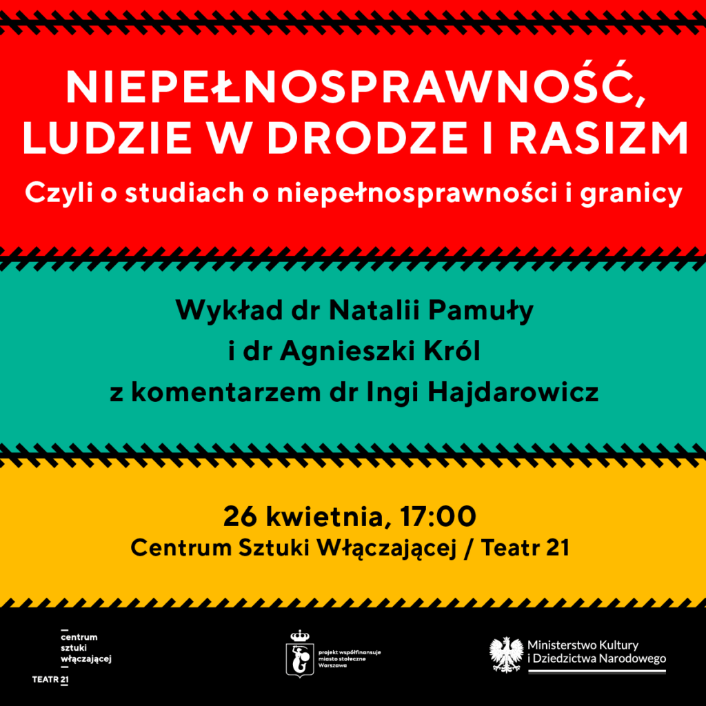 „Niepełnosprawność, ludzie w drodze i rasizm. Czyli o studiach o niepełnosprawności i granicy” – wykład w Centrum Sztuki Włączającej / Teatr 21 w Warszawie