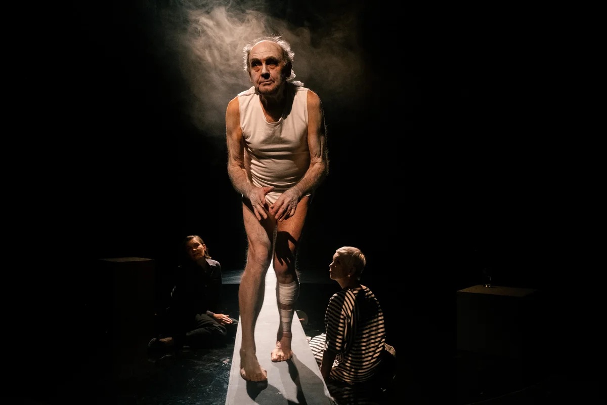 Jan Peszek gra brawurowo, z maestrią. Jego artysta – człowiek – władca, odchodząca, wielka osobowość i lord w jednym, to przykład techniki aktorskiej opanowanej i wyćwiczonej do bólu. Ruch, gest, mimika, sprawność fizyczna – tego wymaga ta rola. Peszek dwoi się i troi, a czyni to lekko, pozornie bez trudu. Daje sobie radę z wypijanymi litrami wody, dialogiem w worku, spacerem po wąskiej ścieżce. Może być Julią, Ofelią, Hamletem, twardym bohaterem i miękką kobietą. I oczywiście Pukiem ze „Snu nocy letniej”. Płynnie przechodzi od spraw poważnych do żartu, czaruje barwą i piękną, teatralną dykcją. Nawet spojrzeniem buduje portret artysty-aktora. W dodatku do końca nie opuszcza go nieco wisielczy humor. Tak powstaje pełny wizerunek błyskotliwego indywidualisty, inteligenta zapadającego się pod ciężarem własnego geniuszu, pomieszanego z niemocą i świadomością przemijania, ulotności chwili, nieuchronności upływu czasu. Po prostu końca. A może da się jeszcze coś wycisnąć z życia, dorzucić do artystycznej drogi kolejną perłę? Oczu nie można oderwać od tej gry!