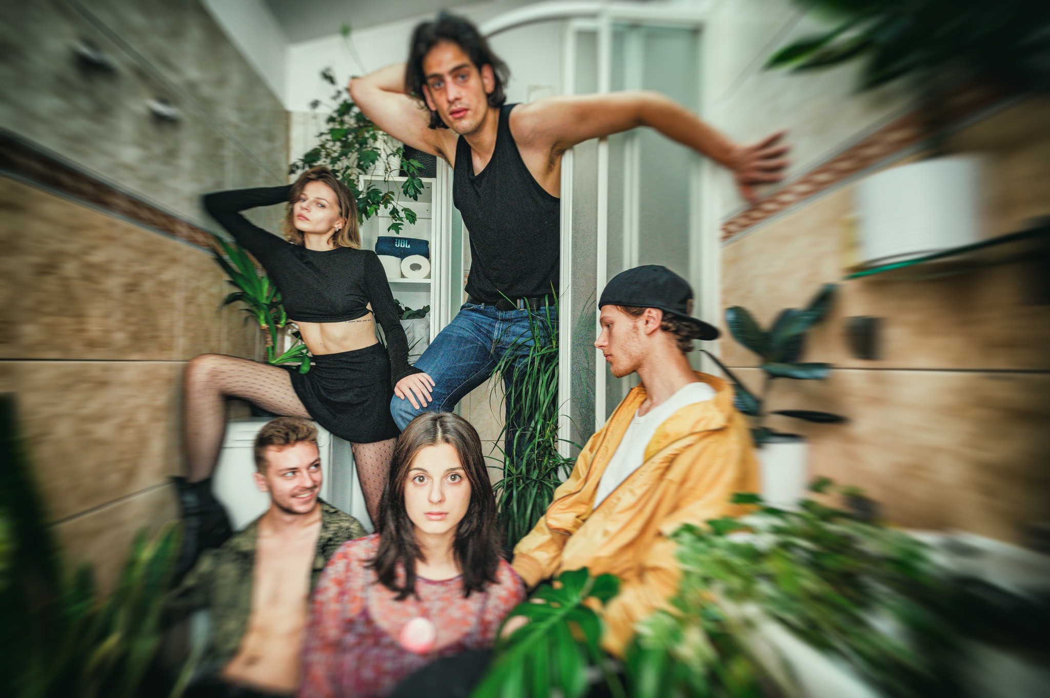Na zakończenie drugiej edycji Festiwalu Młodego Teatru organizowanego przez Wojewódzki Ośrodek Animacji Kultury w Toruniu festiwalowa publiczność obejrzała reżyserski debiut studenta II roku Wydziału Reżyserii i Dramaturgii AST, Piotra Mateusza Wacha: grzybobranie / ZIMA NUKLEARNA. I myślałby kto, że było jej nudno jak na grzybobraniu? Wręcz przeciwnie – po wejściu na widownię zostaliśmy od razu zaproszeni na porządnie rozkręcone już urodziny Aliny (Katarzyna Skowron), żadne „-naste”, lecz trzydzieste. Wcale jednak niedojrzałe, choć zorganizowane w gorące święto Bożego Ciała. „Srogo” już rozkręcone, na halucynogennych efektach i wizualnych zniekształceniach w głowach partnera Aliny – Żądzy (Adam Paczkowski), któremu strasznie zimno, mentalnie nieobecnej przyjaciółki Medy (Oliwia Durczak), jej przeogromnego chłopaka Wodzu (Maksymilian Piotrowski, 199 cm wzrostu!) oraz samotnego w tym gronie osób z grzybkowym uzależnieniem geja Ruina (Błażej Szymański). To, co dzieje się w ich głowach po zażyciu substancji, przybiera formę wizualnych zniekształceń, takich jak „oddychające” ściany, kolorowe lub geometryczne formacje lub kalejdoskopiczne iluzje widoczne w kapitalnych wizualizacjach (wykonywanych na żywo) nad uciętą głową czarnego manekina przyklejonego taśmą do ściany. Dwie czerwone sofy-usta oraz żeliwna wanna (przestrzeń, wizualizacje, światło: Kuba Kotynia) posłużą bohaterom tego urodzinowego tripu za schronienie przed złym słowem, spojrzeniem, gestem, przed zawrotami głowy, zaburzeniami widzenia i ruchowej koordynacji, przed gadatliwością, zamroczeniem, drżeniami mięśniowymi (spektakularny ruch sceniczny, szczególnie w wykonaniu Błażeja Szymańskiego – Piotr Mateusz Wach) i drętwienia…