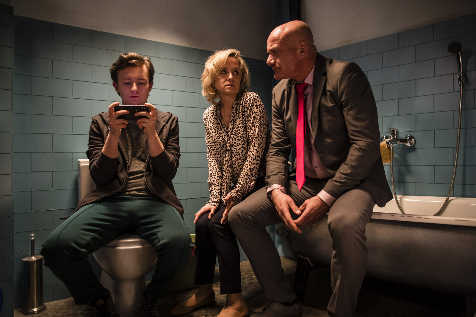 Brzmi intrygująco? Niewątpliwie. Sam zaś temat jawi się jako niezwykle istotny, zwłaszcza w okresie, gdy osób dotkniętych fonoholizmem, czyli uzależnieniem od telefonu komórkowego, przybywa z dnia na dzień, widzimy ich poruszających się jak zombie ze wzrokiem utkwionym w ekranie smartfona wszędzie i o każdej porze. I bynajmniej problem ten nie dotyka tylko osoby tak młode, jak Artur ze sztuki Lemańskiego, którego Jakub Zając zagrał w roku poprzedzającym jego udział w słynnym „Zenku”. Zagrał wiarygodnie, bo był, jak można przypuszczać, równolatkiem bohatera i problemy tego pokolenia nie były mu pewnie obce. Zając z zadania aktorskiego wywiązał się co najmniej poprawnie, a nie było ono łatwe, bowiem rola Artura to rola niemal niema, a aktor przez sporą część spektaklu pokazywany jest z perspektywy swoich pleców. Nie wiadomo do końca, czy młody człowiek zdaje sobie sprawę, iż uczestniczy w eksperymencie swojego ojca (Piotr Zelt), który wynajmując innych młodych ludzi: Anetę (Zuzanna Zielińska) i Wojtka (Adam Bobik, dziś znany jako młody Kazimierz Pawlak z prequela „Samych swoich”) za obietnicę pracy w jego firmie stara się swojego syna „wylogować do życia”. Przy tej okazji mamy również pokazany problem rozbitej rodziny i chęci dominującego wpływu rodziców na życie dorosłej latorośli. Bo – jak łatwo się domyślić – matka, grana w sposób drażniąco przerysowany, ocierający się niemal o manierę przez Małgorzatę Bogdańską (skądinąd świetną aktorkę), ma kompletnie inną wizję życia syna, który w efekcie podąża swoją drogą, którą uznaje za jedynie dobrą dla niego, dającą mu autentyczne poczucie wolności i spełnienia. A tak swoją drogą, Karolowi Lemańskiemu należą się słowa uznania za antycypację już w 2019 roku przemożnego wpływu na nasze funkcjonowanie sztucznej inteligencji, botów i szeroko pojętego świata wirtualnego.