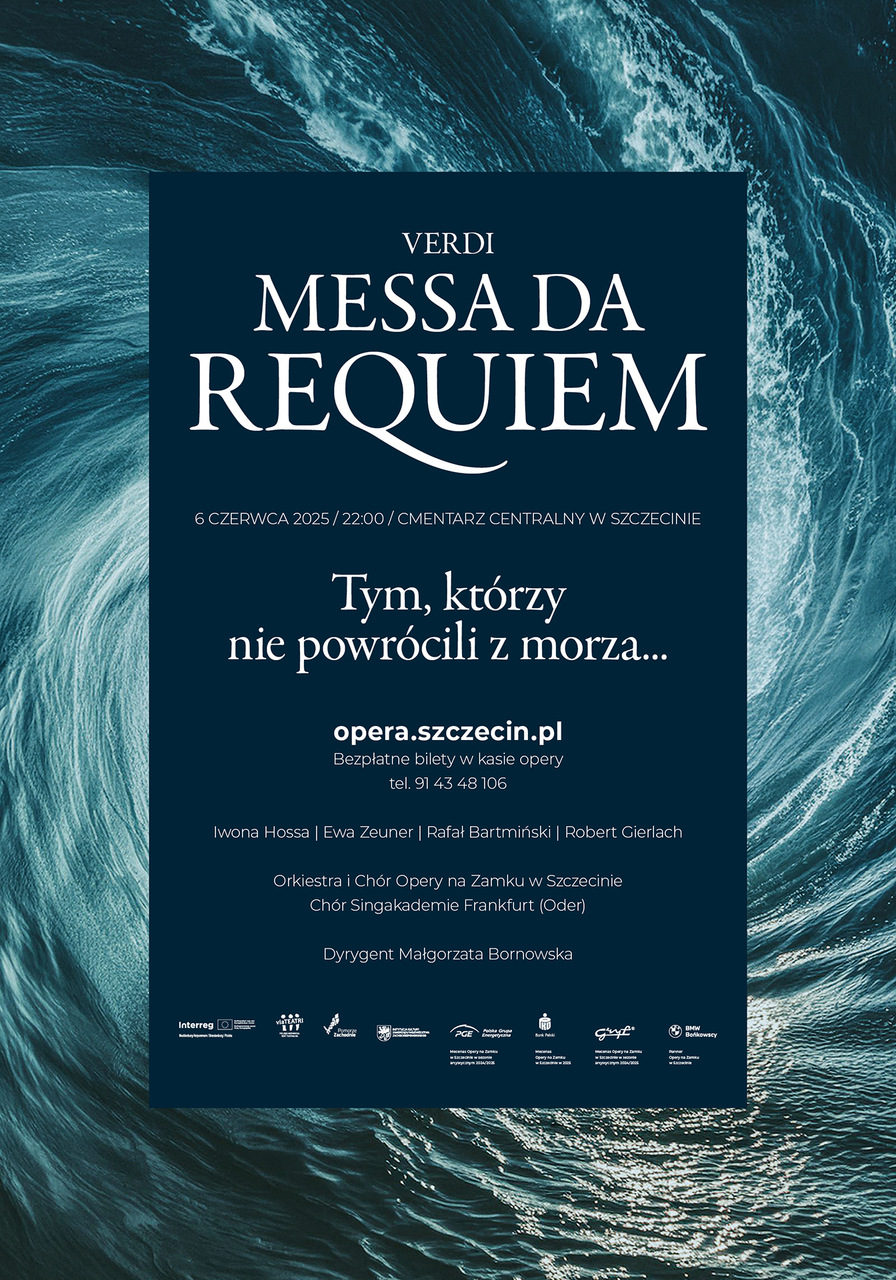 Koncert „Tym, którzy nie powrócili z morza…” jest wydarzeniem cyklicznym, odbywającym się w niezwykłej scenerii Cmentarza Centralnego, największego w Polsce, a trzeciego w Europie, będącego jednocześnie jednym z najpiękniejszych parków Szczecina. W ten sposób od ponad 20 lat czcimy pamięć ludzi, którzy z morzem związali swoje życie, i których morze zabrało na wieczną wachtę. Koncert tradycyjnie poprzedza ceremoniał morski, a muzyce towarzyszy gra świateł, potęgująca nastrój wieczoru. Wyjątkowy i niepowtarzalny klimat wydarzenia przyciąga co roku ponad tysięczną publiczność. Podczas tegorocznego koncertu zabrzmi wybitne, monumenalne dzieło Giuseppe Verdiego “Messa da Requiem” w wykonaniu solistów, orkiestry i chóru Opery na Zamku oraz chóru Singakademie Frankfurt (Oder).