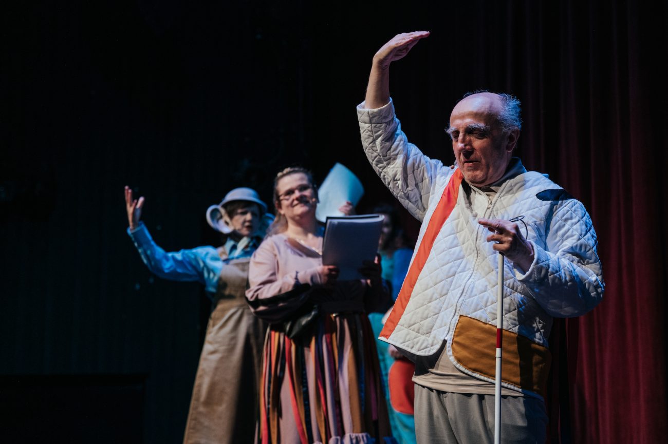 Nie jest jednak aż tak poważnie, a przynajmniej nie przez cały czas. Przepysznie zabawny jest Klub Adoratorów Miłości Prawdziwej, w skrócie KAMP (w tych rolach świetni Grażyna Madej, Konrad Pawicki i Wiesław Orłowski). W szpiegowskich płaszczach i z doprawionymi wielkimi uszami pouczają aktorów z niepełnosprawnościami, jak kochać i jak być kochanymi, zgodnie z katolickimi wartościami i (nie)moralnością. To, co mówią jest doprawdy absurdalne. Osoby z niepełnosprawnością intelektualną oczywiście nie mają w Polsce takich samych praw jak osoby normatywne. Przestrzegani są przed seksem przedmałżeńskim, a przecież nie mogą zawrzeć związku małżeńskiego. Poziomy wykluczenia piętrzą się. Na szczęście członkowie KAMP-u są tak przerysowani, że ani przez moment nie bierzemy ich słów na poważnie.