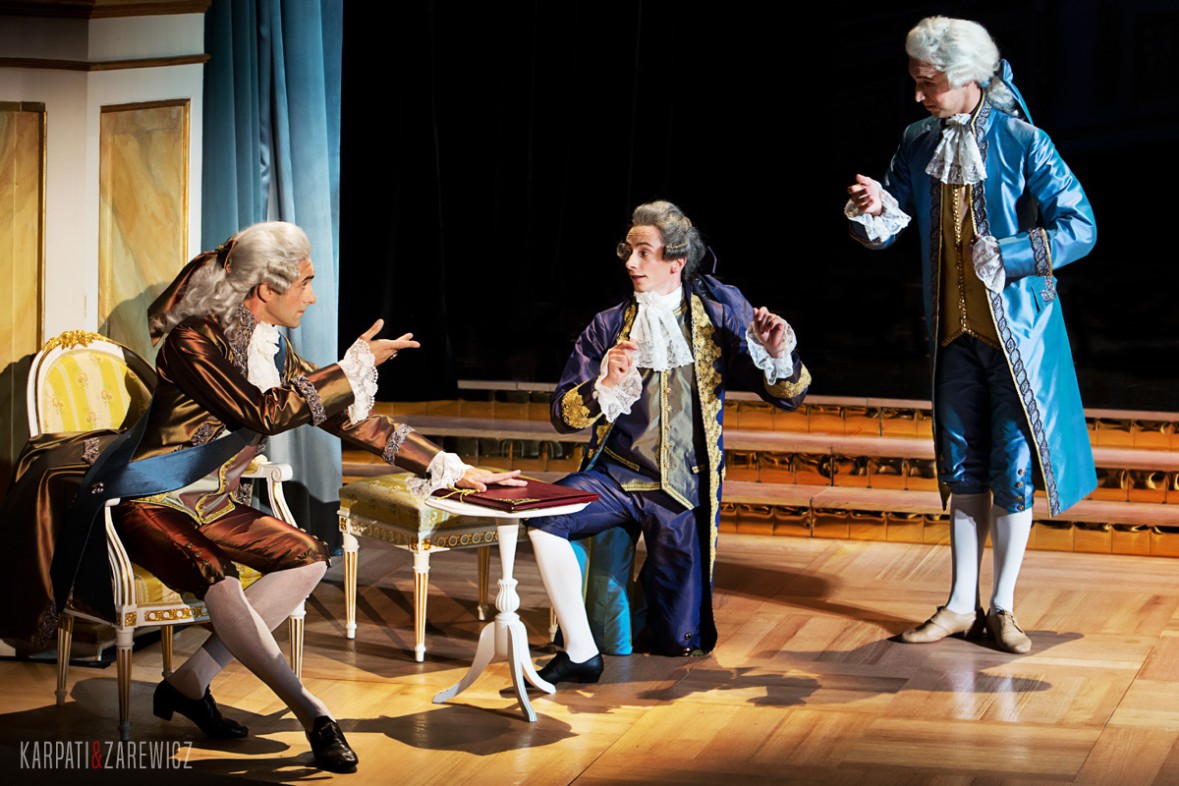 Romana Agnel, wraz z tancerzami Cracovia Danza, postanowiła z dużym wyczuciem teatralności odtworzyć na scenie ewentualne spotkanie francuskiego tancerza z polskim władcą, bo jak wiadomo z historii nigdy do takiej audiencji nie doszło. W spektaklu, nie próbującym być li tylko historyczną rekonstrukcją tamtych hipotetycznych zdarzeń, wykorzystano utwory Wolfganga Amadeusza Mozarta, Jeana Josepha Rodolphe’a i Macieja Radziwiłła, które Zespół Instrumentów Dawnych Polskiej Opery Królewskiej Capella Regia Polona wykonywał pod jak zawsze czujnym, dyrygenckim okiem, zasiadającej za klawesynem, Lilianny Stawarz. Powstało taneczno-muzyczne przedstawienie o wyraźnie artykułowanym charakterze impresyjno-dworskim, nie pozbawione wprowadzających humor elementów pantomimicznych, z wytwornymi kostiumami, z tańcem dyskretnym, majestatycznym w ruchu i pełnym dostojeństwa, z wyrazistym rysunkiem gestycznym, zwłaszcza rąk, i dobrze rysującymi się emocjami na twarzach tancerzy. Zwraca bez wątpienia uwagę również kolorystyka kostiumów, których autorką jest Marlena Skoneczko, wysmakowanych w detalach i poszczególnych częściach garderoby, a także peruk. Romana Agnel stara się być wierna myślowym założeniom i ideom Noverre’a, choć jako artystka poszukująca w tańcu historycznym, czy jak wolą inni – dawnym, nowych odniesień i inspiracji, widać, że próbuje spojrzeć na nie przez pryzmat swoich własnych dotychczasowych poszukiwań i doświadczeń. Reżyserka ciekawie i z dużą dozą finezji, niekiedy nawet w sposób groteskowy, eksponuje wszystkie wątki fabularne, które mają też niekiedy charakter rodzajowych scenek wpisujących się w atmosferę królewskiego dworu. Wyobraźnia i choreograficzna wrażliwość pomysłodawczyni spektaklu nie zatrzymuje się jednak tylko na aspekcie historycznym, wprowadzając w baletową partyturę również kilka elementów jakby wyjętych z tańca współczesnego, zauważyć to najłatwiej w wątkach mitologicznych, z których Noverre czerpał pełnymi garściami.