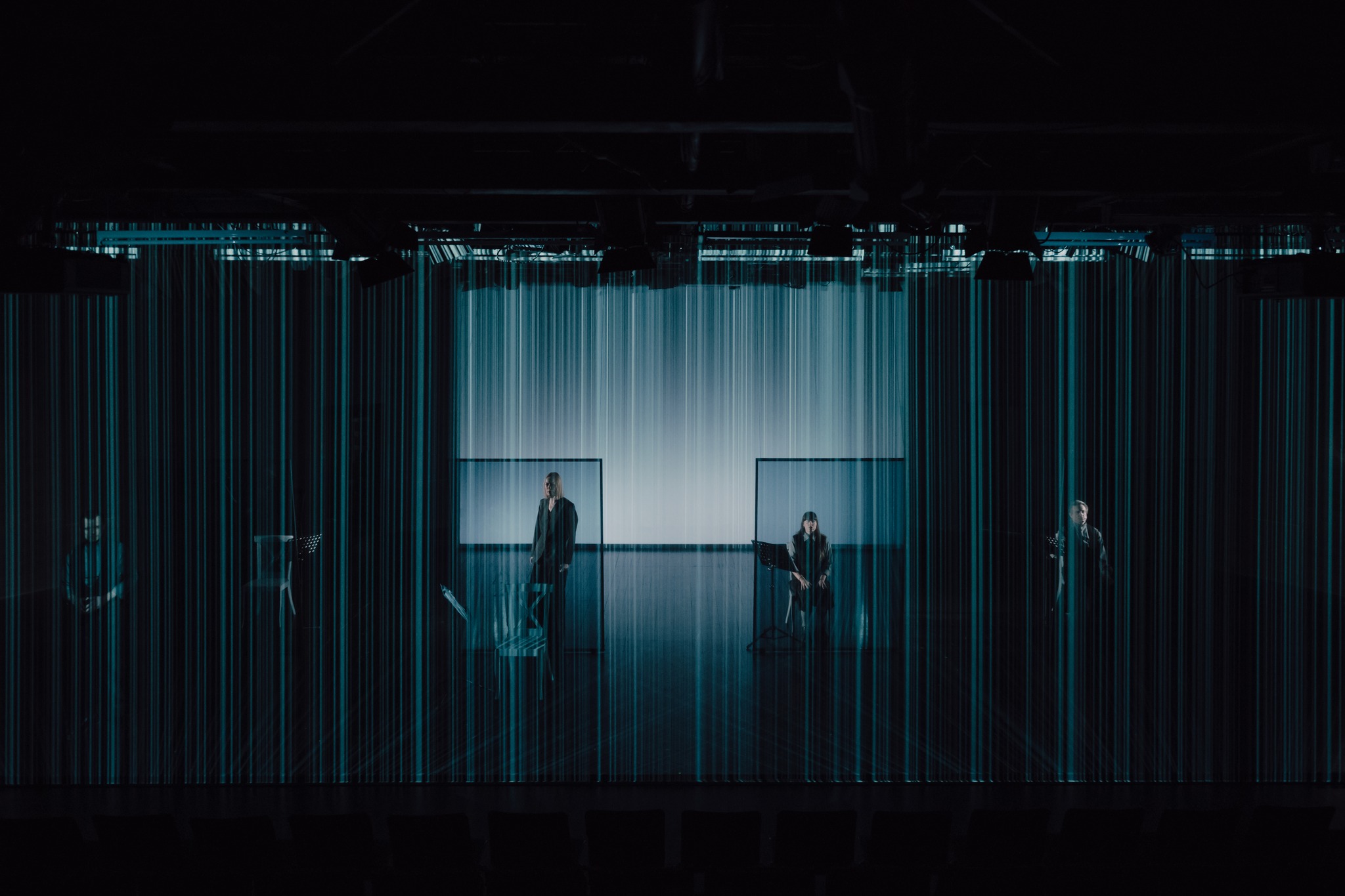 Jeszcze jednym istotnym elementem kompozycji jest scenografia autorstwa Marka Brauna. Umiejscowienie postaci za szybami oraz instalacja pomiędzy sceną a widownią przesłony z tiulu (umożliwiającej jednocześnie projekcje video), wizualizują barierę komunikacyjną oddzielającą od otoczenia osoby w spektrum autyzmu. Deficyt komunikacji zobrazowany jest także poprzez szczątkową interakcję między postaciami.